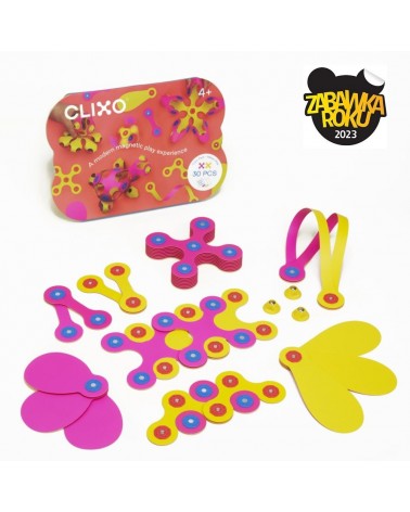 Clixo klocki magnetyczne Crew pack Różowo-Żółte 30 elementów