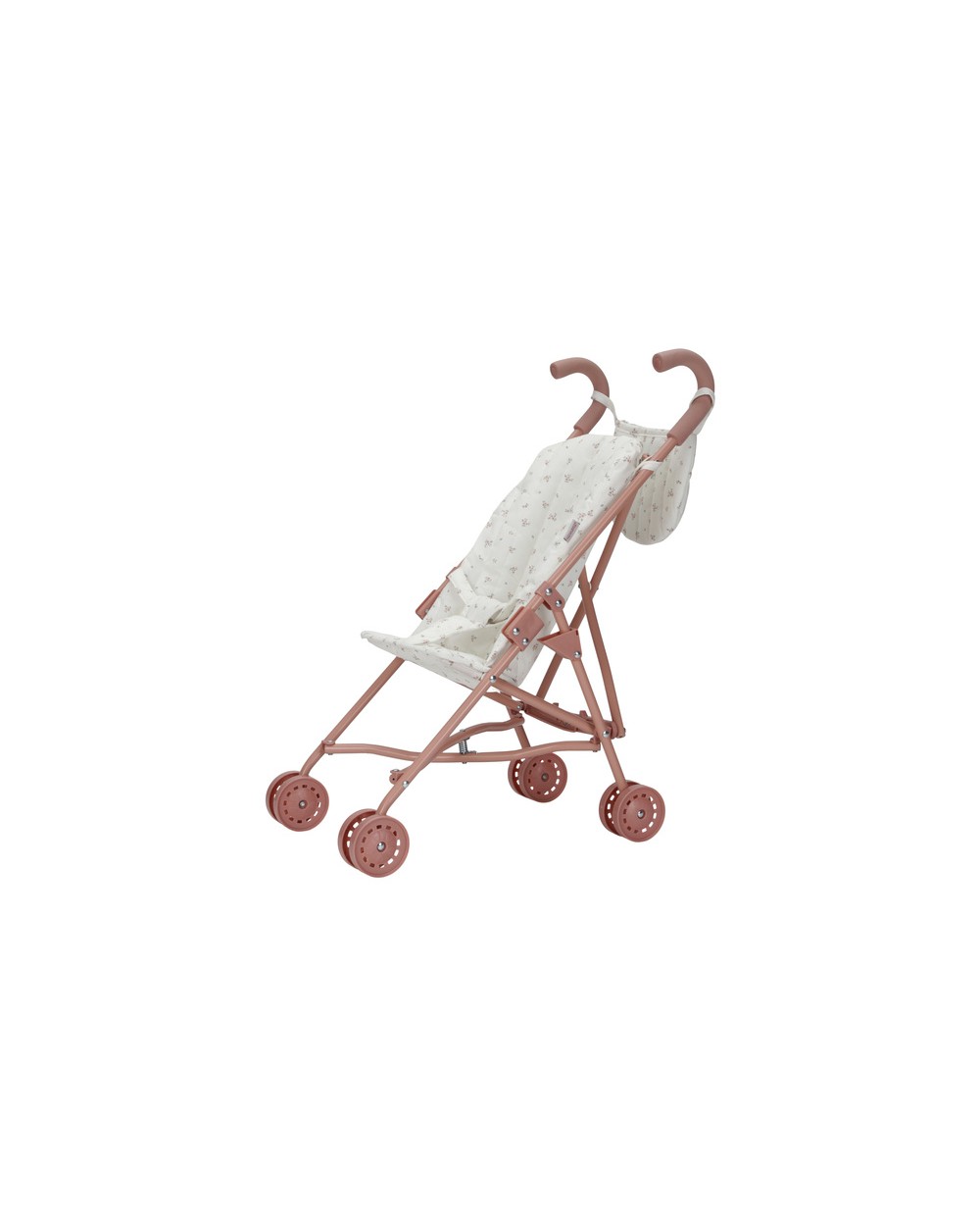 Składany wózek dla lalek od Little Dutch. Dokąd zabierze Cię dzisiaj Twoja wyobraźnia? Posadź swoją ulubioną lalkę lub przytulankę i pozwól wózkowi poprowadzić Cię do nowej przygody. Wózeczek wyściełany jest materiałem ze wzorem White Meadows, a dopasowana torba na uchwytach zapewnia miejsce na akcesoria dla lalek i artykuły potrzebne na spacer. Pasek sprawi, że lalka nie wypadnie podczas spaceru. Składany wózek dla lalek z różową ramą, różowymi miękkimi uchwytami i 4 różowymi kółkami został zaprojektowany tak, aby sprzyjać kreatywnej zabawie i rozwijać poczucie odpowiedzialności małych opiekunów. Można go łatwo złożyć, co ułatwia przechowywanie. Obserwuj, jak Twoje maleństwo radośnie pcha wózek dla lalek, śpiewa kołysanki i przystaje, by nakarmić lub pocieszyć swoje udawane dziecko. Zabawka uczy cennych umiejętności życiowych poprzez magię zabawy.