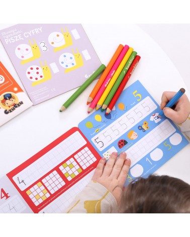 Ołówki i kredki w dłoń, czas na konkretne twórcze zadania i przygodę z pisaniem cyfr! Kreatywny zestaw zawiera 2 długie książeczki harmonijki z kreatywnymi zadaniami. Wesołe zabawy zainspirują dzieci do ćwiczenia precyzyjnych ruchów dłoni i przygotowują do nauki pisania i liczenia.