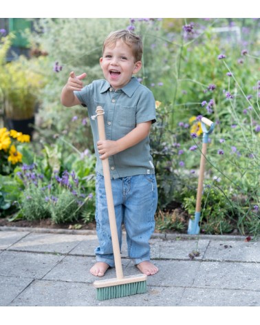 Miotła Forest Friends od Little Dutch. Dziecięca miotła przyda się podczas wesołej zabawy w ogrodzie. Wykonana z wytrzymałego drewna z plastikowym włosiem miotła jest idealna dla młodych pomocników. Główka miotły jest ustawiona pod wygodnym kątem, co ułatwia zamiatanie, a uroku dodają jej ilustracje z kolekcji Forest Friends. Miotła jest wyposażona w sznurek ułatwiający przechowywanie. Idealna dla małych ogrodników, którzy chcą pomagać i odkrywać! Miotła jest wspaniałym uzupełnieniem pozostałych produktów z Kolekcji Ogrodowej od Little Dutch.