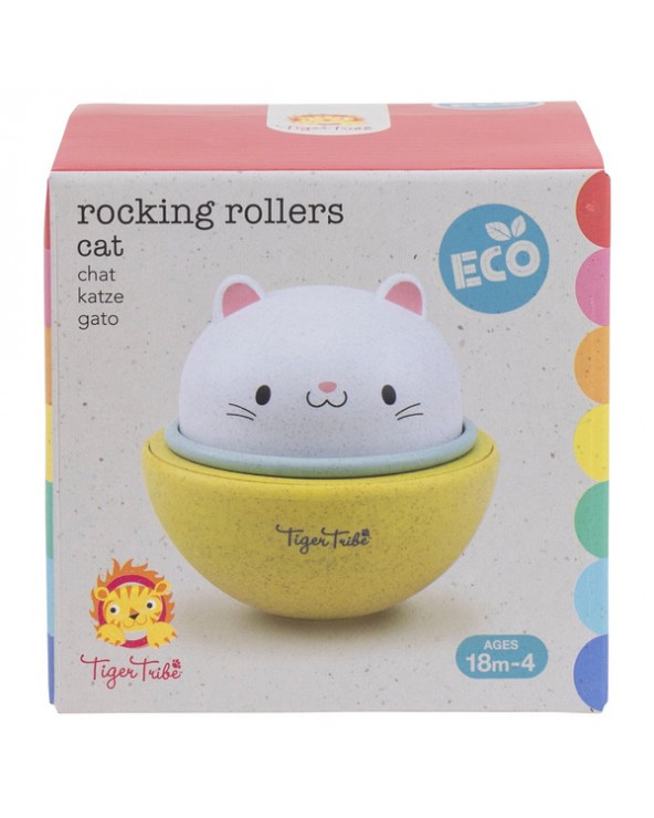 Rocking Rollers - Kot od Tiger Tribe to najfajniejsza i najbardziej wszechstronna zabawka dla dzieci! Ten przyjaciel najmłodszych kołysze się tam i z powrotem, zapewniając godziny rozrywki. A kiedy zdejmiesz podstawkę, naciśniesz głowę swojego małego przyjaciela - zobaczysz jak sunie po pokoju na wbudowanych kółkach. Nie ma ograniczeń tego, co Twoje dziecko może zrobić z kołyszącym kotkiem. Produkt jest częścią nowej serii ECO - produktów stworzonych z bioplastiku.