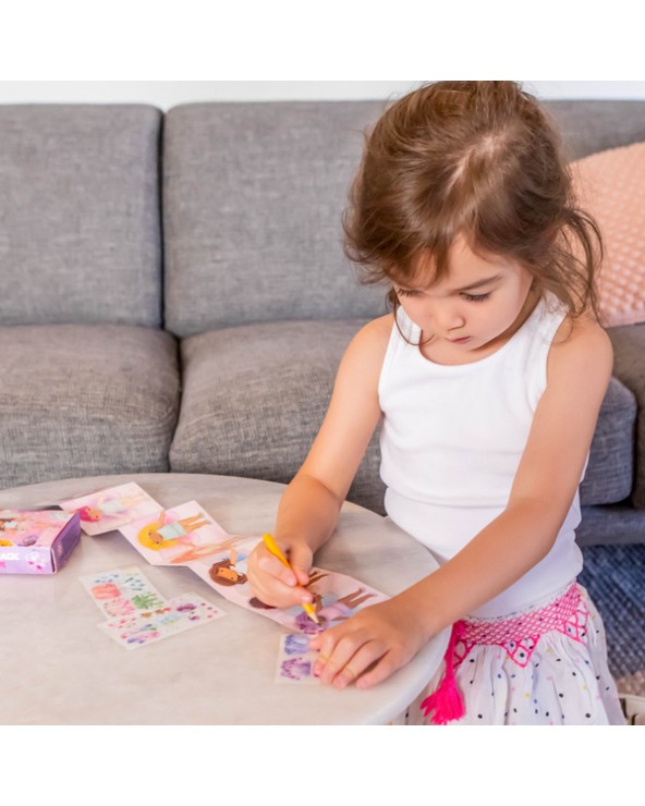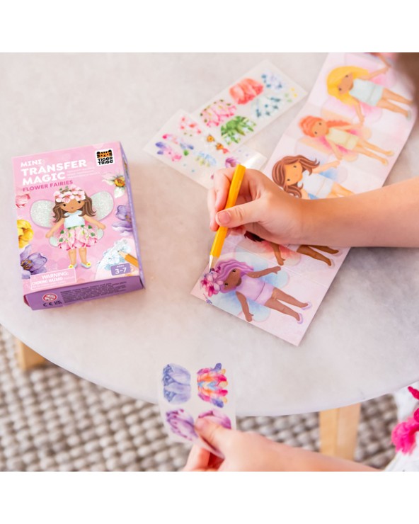 Tiger Tribe Zestaw z Folią Transferową - Wróżkowa Magia od Tiger Tribe to uroczy zestaw do zabawy w nowym, super kompaktowym formacie, w którym dzieci wykorzystują swoją wyobraźnię, aby tworzyć własne kreatywne kombinacje. Wystarczy wybrać arkusz kalkomanii, usunąć papier podkładowy, umieścić wybrany element kalkomanii na szablonie wróżki i pocierać ją dołączonym ołówkiem. Zaprojektowane do bezproblemowej, przenośnej zabawy, wszystko jest starannie zapakowane w poręczne pudełko.
